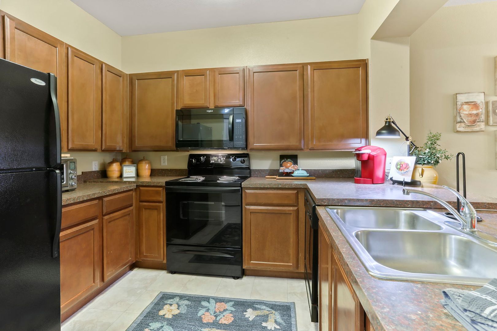 Beautifully furnished corporate condos. One bedroom, one bath ground floor unit with open floor plan and wood floors throughout. Gated community with pool, spa, indoor basketball court and gym. Completely equipped, utilities provided including wireless internet and smart TV's. Unpack your bags everything else you need is there. Month to Month rental...Minimum 1 month lease required, Lease terms or flexible but must be for at least 30 days.
